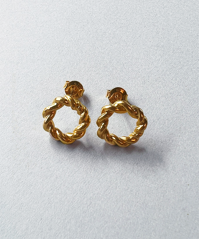 大きめのトレンド感溢れるねじりがGoldやシルバーのつやを増して見せ、華やかに見せてくれるピアスです。